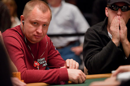 Крис Мурман выставился ва-банк с K♥ 6♣ но получил мгновенный колл от Александра Кострицына с карманной парой восьмерок. На столе были открыты 2♣ 3♦ 7♥ 3♠ 2♠ и Александр проходит в финальный день!
