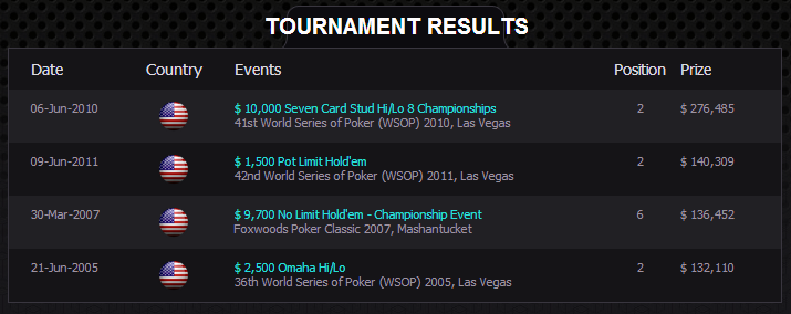 Аллен начал играть кэш ещё в колледже, но в один момент его выигрыши стали такими огромными, что стало ясно – нужно срочно становиться профессионалом в этом деле. Это решение, очевидно, стало очень выгодным ему, ведь за последние 12 лет Кесслер попадал 180 раз в призы на оффлайнах, 76 из которых были финалками, и в 14 из них он стал победителем. Он не просто так попадает в призы, он их свирепо завоёвывает, вы просто вдумайтесь, в 40% турниров он уходил с дeньгами в кармане. Ниже вы можете посмотреть небольшую табличку с его самыми выдающимися результатами.