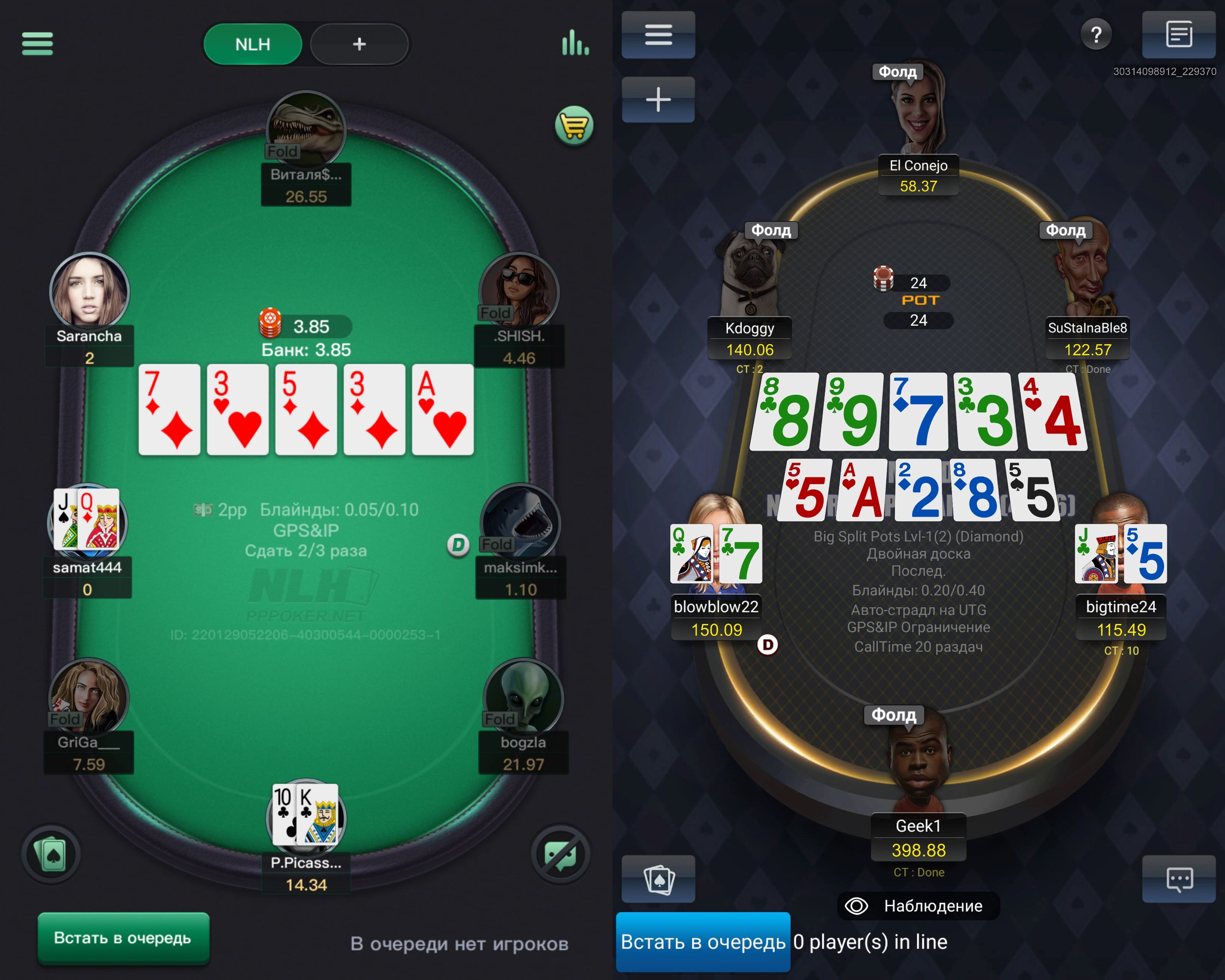 - Разные форматы (6-макс, 9-макс, On Demand) и игры (NLHE, PLO, PLO8)
