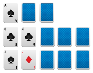 Данная стратегия - практически то же самое, что и было описано выше, единственное отличие состоит в том, что вы оказываете сильное давление на оппонентов, имея сильную верхнюю линию. В таком раскладе слабым звеном является средняя линия, но у вас есть неплохой шанс словить пару, если вы просто будете класть все карты ниже J в середину. Ну и на последок, у вас есть лонгшот на пару тузов сверху, что может принести вам целых 9 кушей.