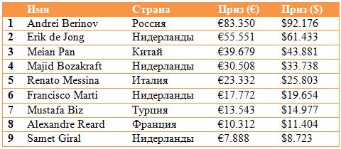 Результаты финального стола Main Event WSOP-C Holland Casino Rotterdam