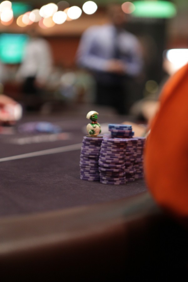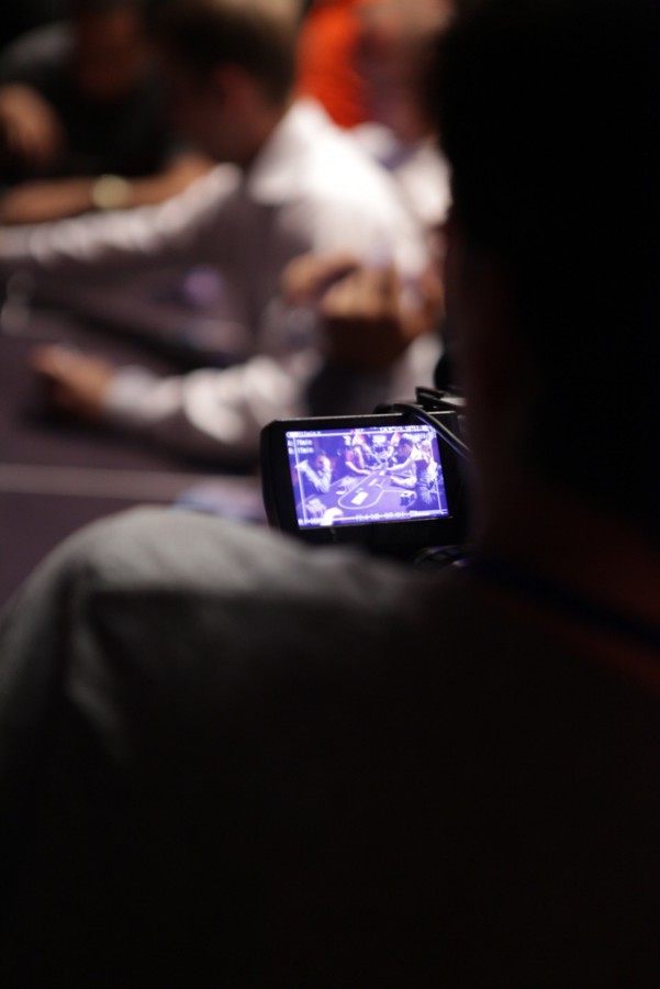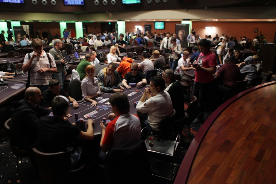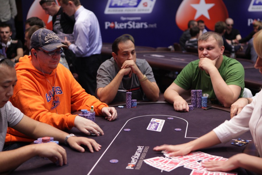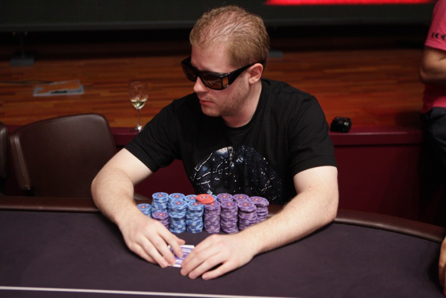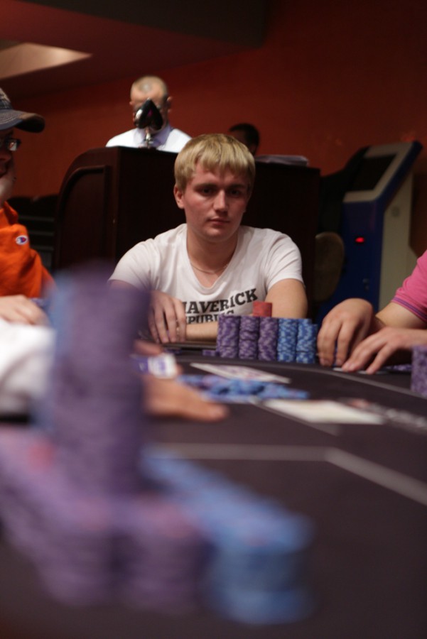 За другим столом тройной олл-ин: коротыш Мартин Дитрих с карманными десятками против АхКх Прохорова и AxQx третьего игрока. На десятку закрывается флеш и Дитрих утраивается, а Прохоров забирает сайд-пот по кикеру.