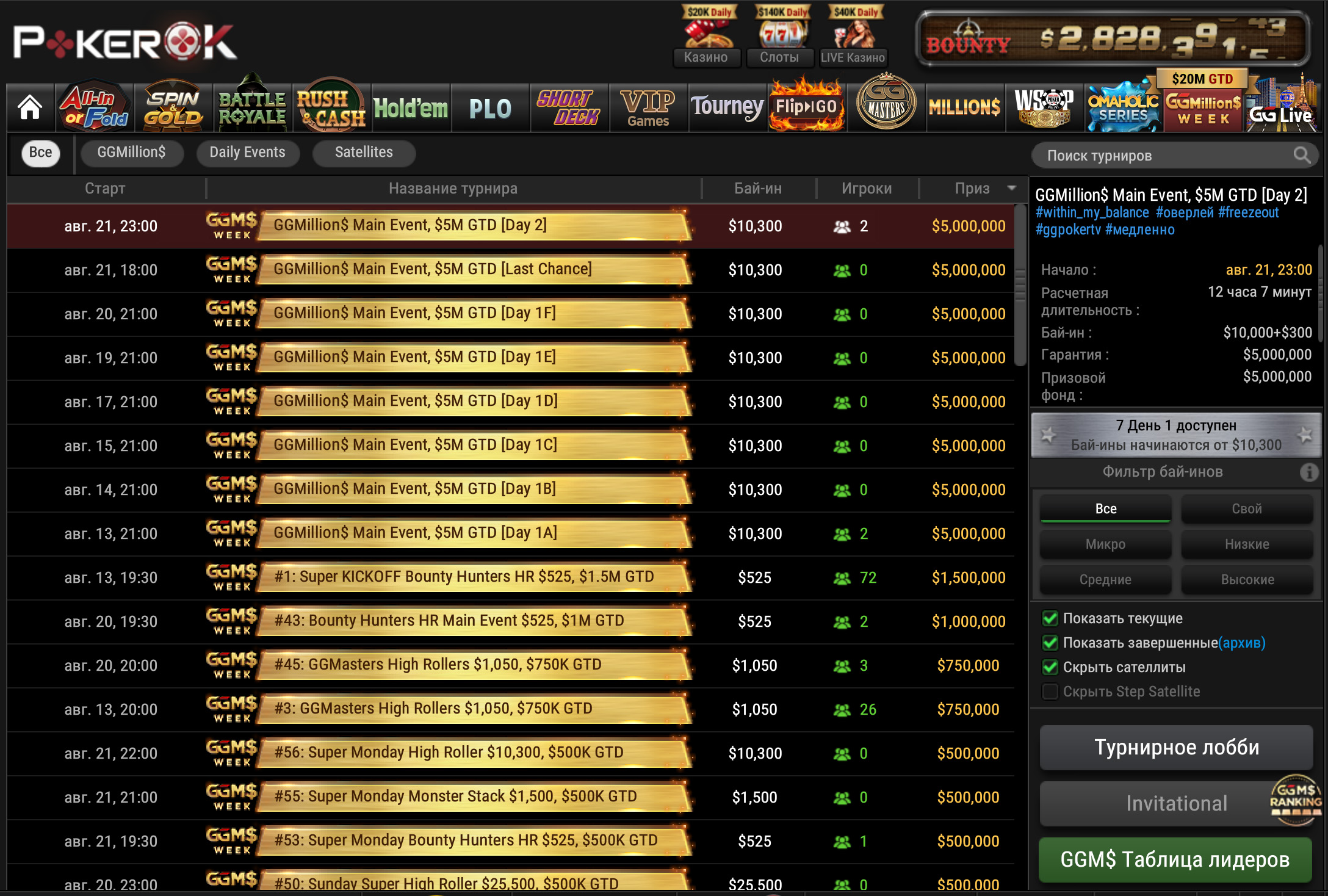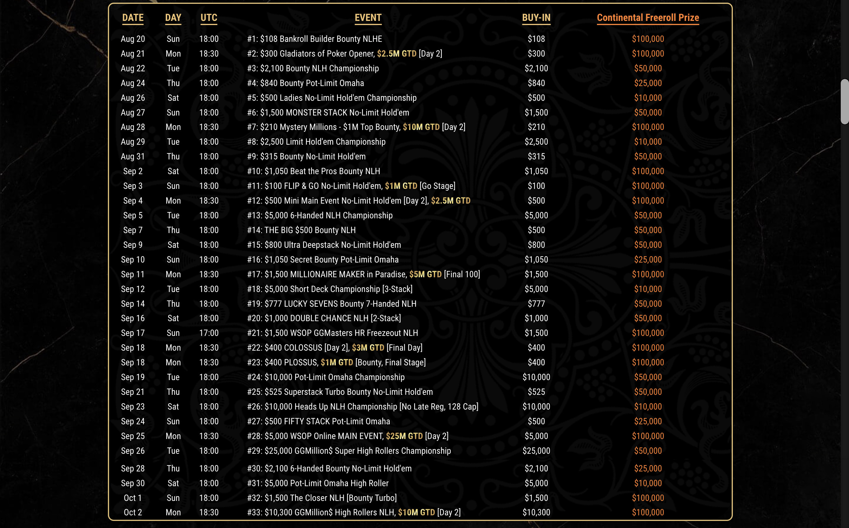 Главное событие серии — $10,300 GGMillion$ будет проходить в формате с 7 флайтами и гарантией $5M.