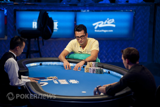 Но обо всём по порядку. Итак, финалка началась с того, что будущие участники хедз-апа, Антонио Эсфандиари и Сэм Трикетт, сели за стол с самыми глубокими стеками, в то время как остальные участники этого эпичного действа за миллион баксов со значительным отрывом пытались их нагнать.