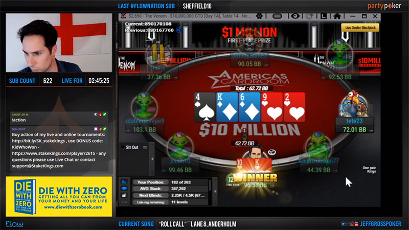 Стример видеоигр, большой фанат покера Эринд «Froste» Пука, собравший в рамках сабатона $100K, тоже подрубил $2,650 The Venom, тоже во второй день не перешёл.