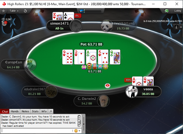 Но «simon1471» обречён был вылететь следующим в раздаче против «veeea».