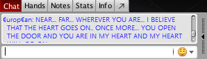 Чтобы настроиться на рабочий лад игрок из Финляндии Samuel «€urop€an» Vousden стал петь песню Celine Dion — «My heart will go on» в чате турнира. Он признался, что напевал её всё утро, готовясь к игровой сессии, слушает её сейчас для настроения и хочет поделиться со своими оппонентами частичкой любви.