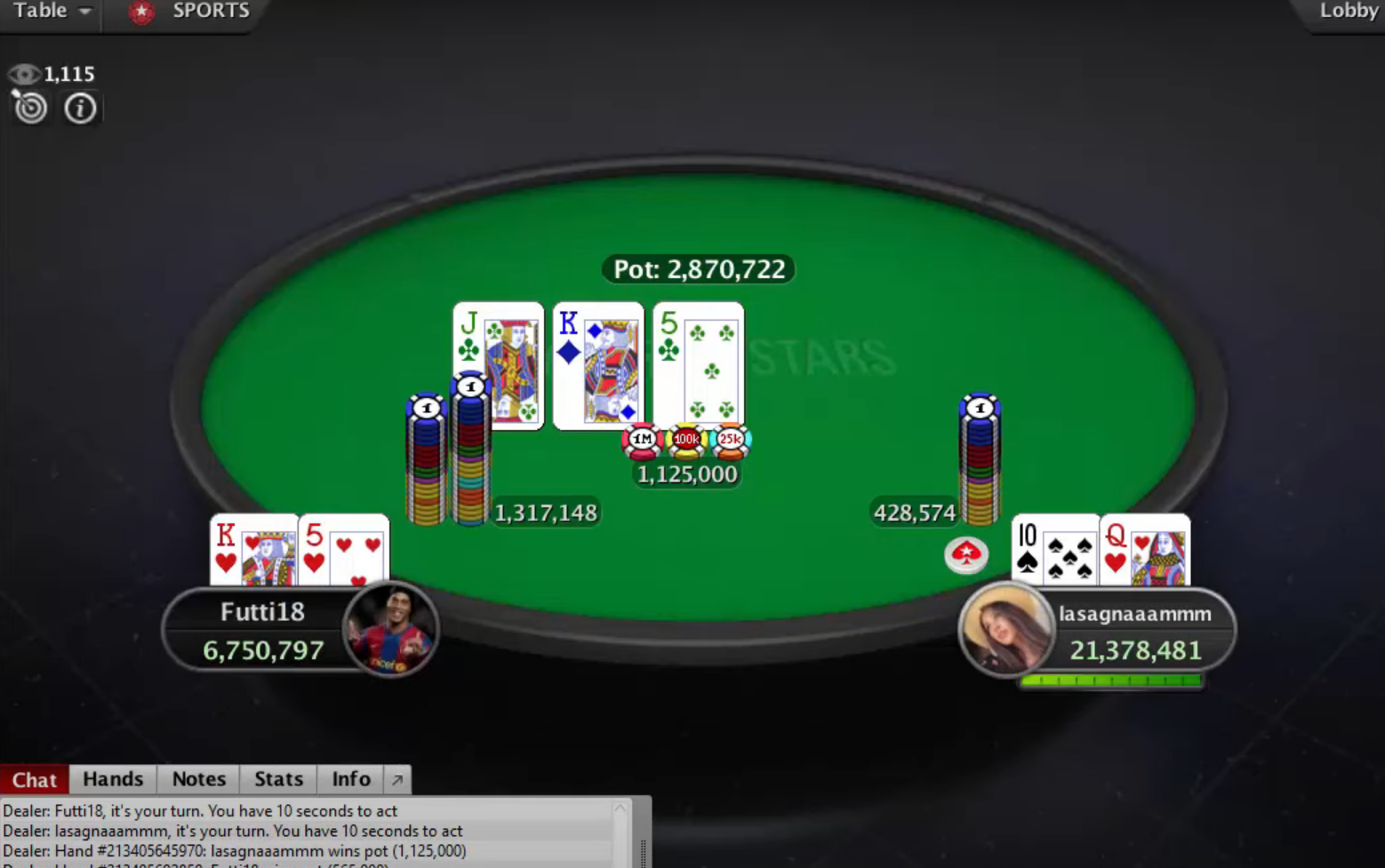 закрывает Мустафе стрит, Сергей запихивает все фишки в центр и турнир заканчивается. Приз за второе место составил $210,580.