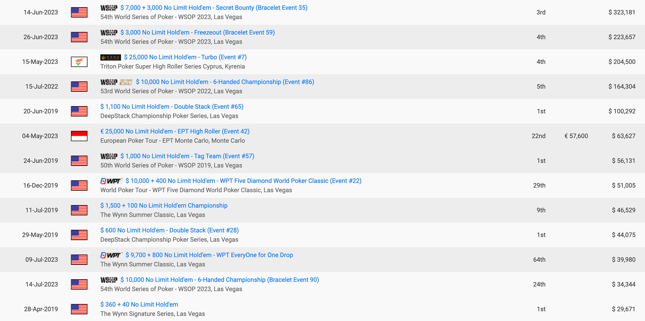 В феврале 2023 года он возглавил рейтинг самых плюсовых кеш-игроков месяца с результатом +$347K.