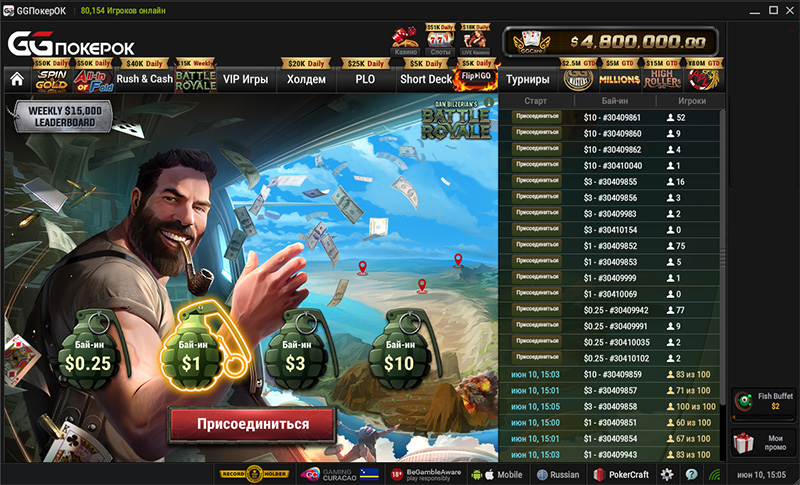 Сегодня 10 июня в 15:00 МСК в клиенте GGПОКЕРОК был запущен новый формат: Battle Royale или Королевская битва.