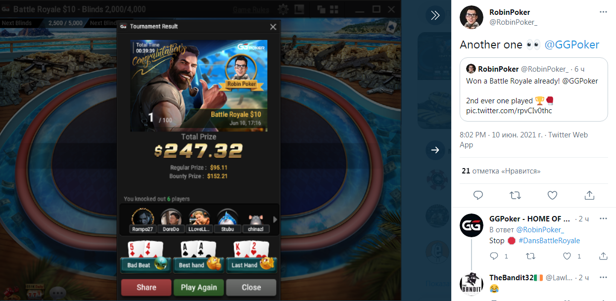 Играли ли вы в новые турниры Батл Рояль на GGПОКЕРОК? Как вам формат? Оставляйте отзывы в нашем чате в Телеграм.