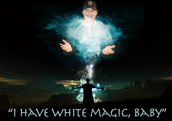 В своём коротком интервью этот "непослушный ребёнок" от покера заявил, что он обладает Белой Магией™, которая позволяет ему читать души своих соперников и всё такое прочее. Убедиться в этом можно, посмотрев небольшой отрывок ниже (русские субтитры включается по нажатию клавиши "СС" в правом нижнем углу панели после начала воспроизведения):