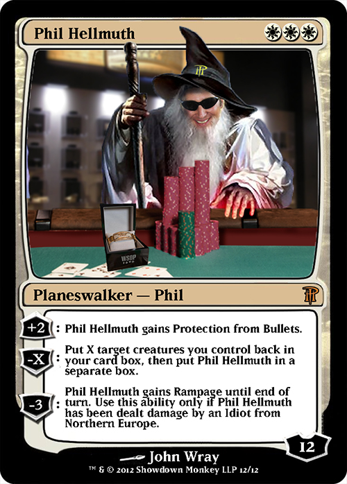 Так вот. В одном из перерывов журналисты ESPN взяли короткое интервью у скандально известного в покерном мире Фила Хельмута, обладателя 12 браслетов WSOP, который впоследствии вылетел на 4-м месте One Drop, проиграв со своими двумя парами с флопа против доехавшего ривером стрэйта Сэма Трикетта.