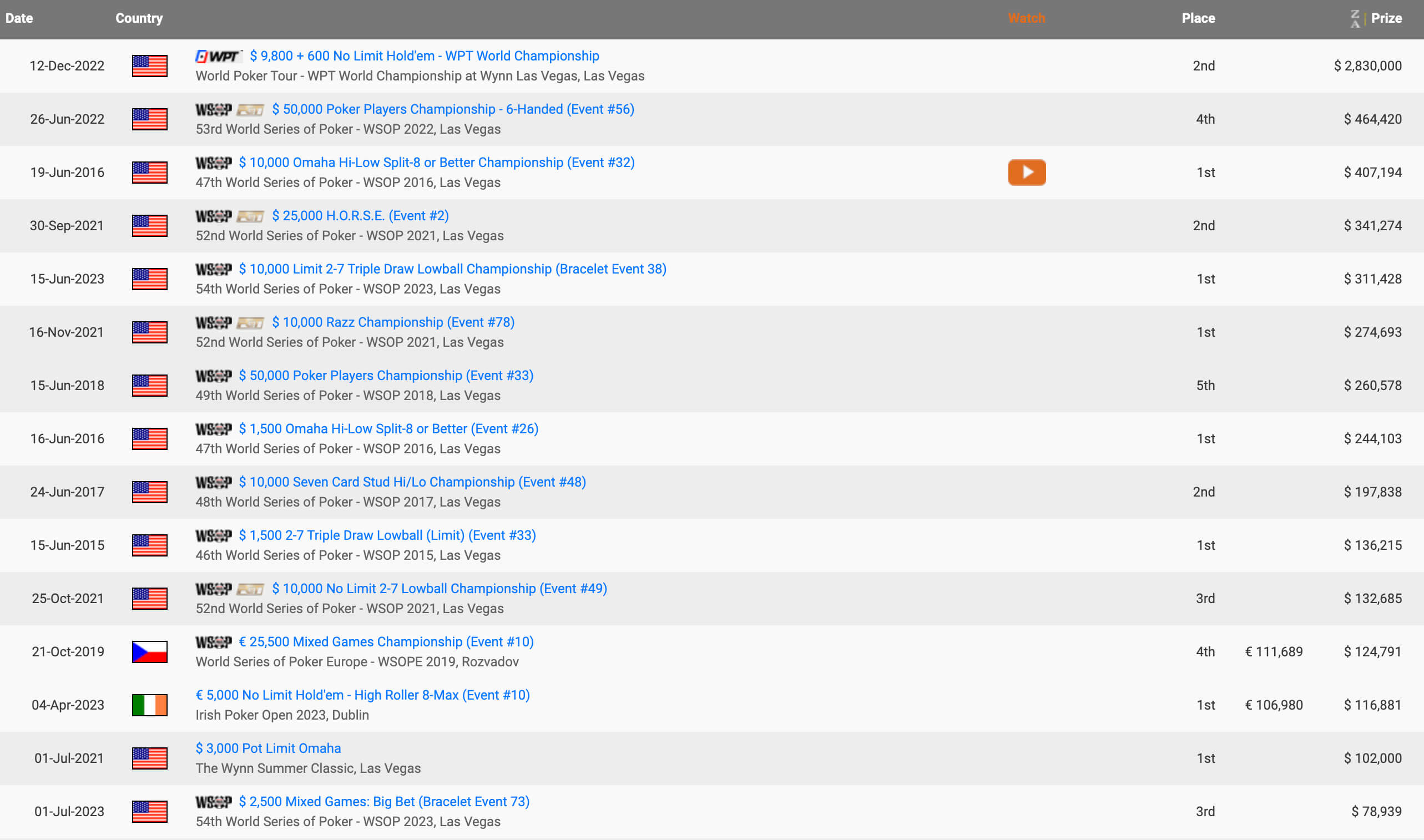 - 2023 — $10К Limit 2-7 Lowball Triple Draw Championship