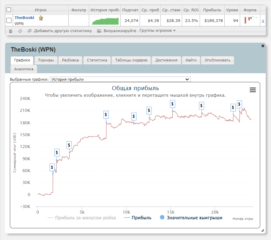 На утро 22 сентября профит Джеффа на PokerKing по данным SharkScope превышал $189K на 24К турниров ABI$30.
