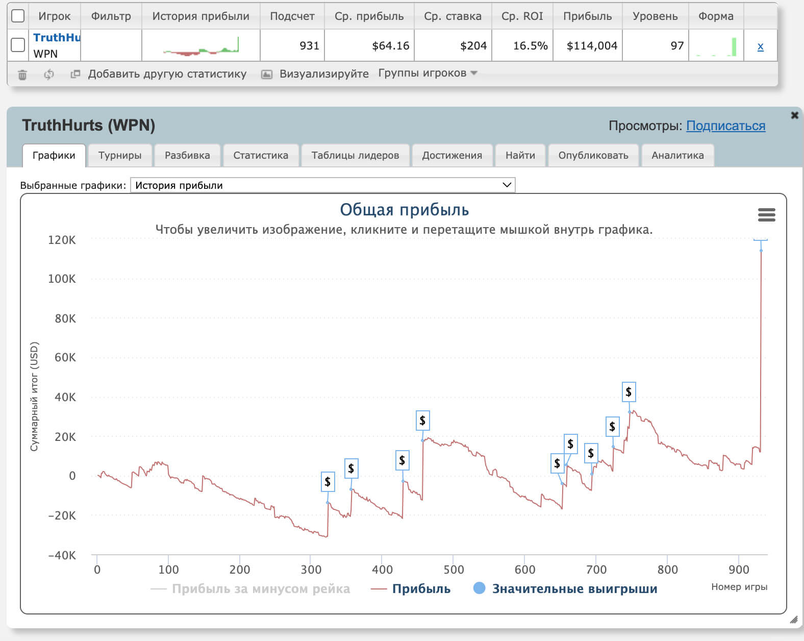 TruthHurts играет на PokerKing два года. В основном доезжал в турнирах OSS и воскресных событиях.