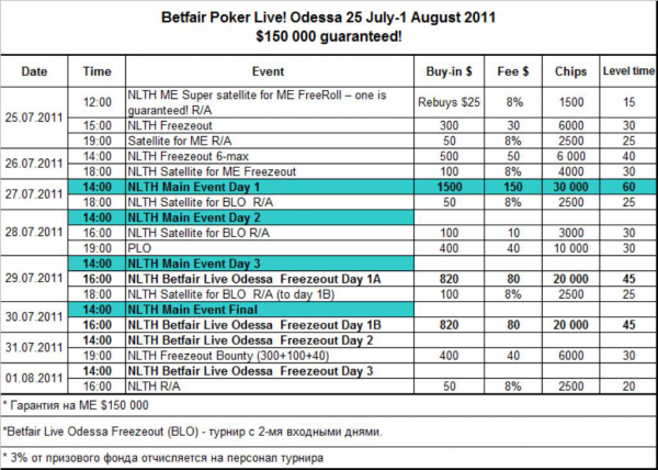 Betfair Poker Live! Одесса 25 июля – 1 августа