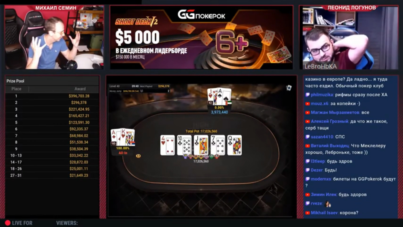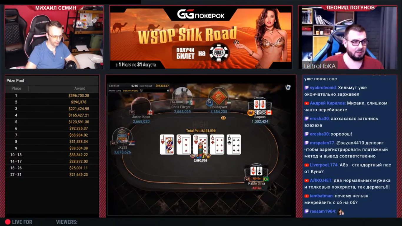 Параллельно со WSOP на GGPOKEROK проходят другие интересные события. Одним из таких стал двухдневный турнир по $10K High Rollers Super MILLION$. Стрим финального стола этого турнира проходил на канале Михаила Сёмина (/MSemin на YouTube, /mikleler на Twitch).
