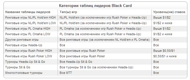 Рейтинги, в которых вы можете принять участие, чтобы стать "Black Card Pro":