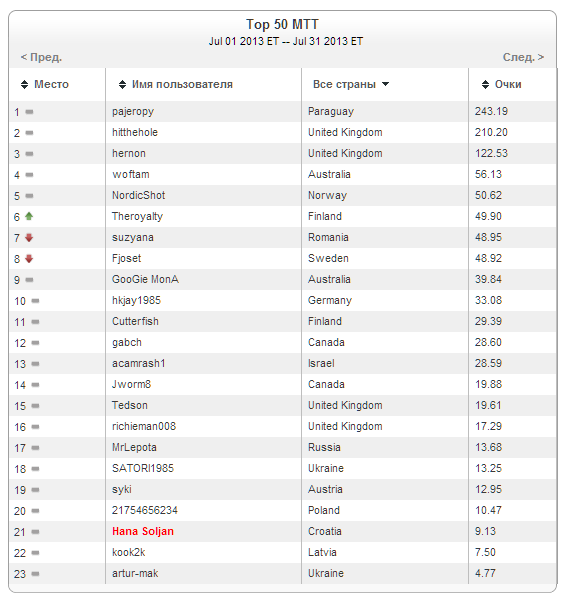Рейтинг лидеров, на примере категории "MTT". Все рейтинги можно посмотреть у себя в клиенте или тут.