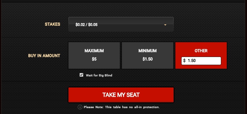 Выбор первичных параметров даст возможность перейти к желаемому лимиту и задать сумму, с которой ты начнешь играть. Только после этого ты можешь сесть за стол: