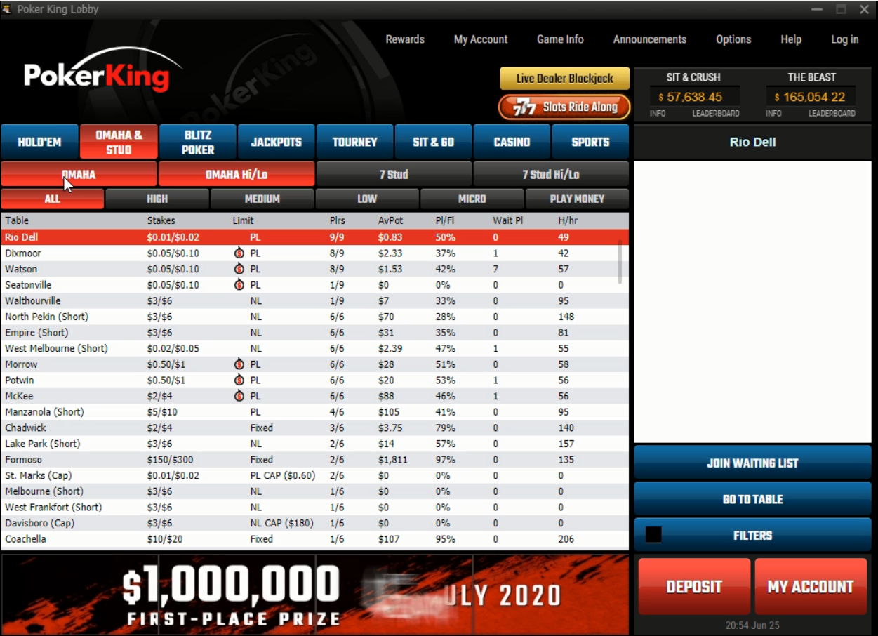 С трафиком здесь пока сложно. Большая часть игры проходит на двух лимитах по Омахе – PL10 и PL50. В Холдем играют на NL4 и NL20 — до 20-25 подключений на каждый лимит. Все остальные лимиты редко собирают больше одного стола.