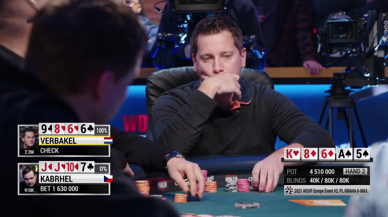 — Вербакель чекает, Кабрхел задумался и поставил 1,63M, оставляя себе 910K. Нидерландец быстро уровнял.