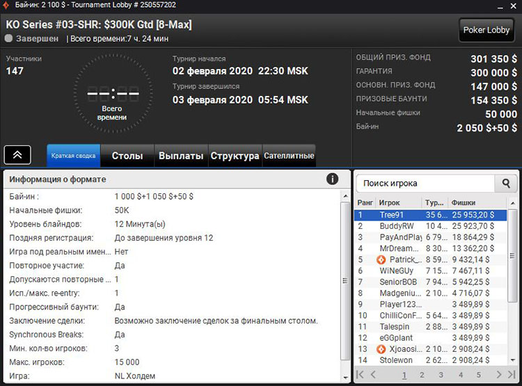 - +$18.000 за 5-е место в турнире #03-SHR $300K GTD