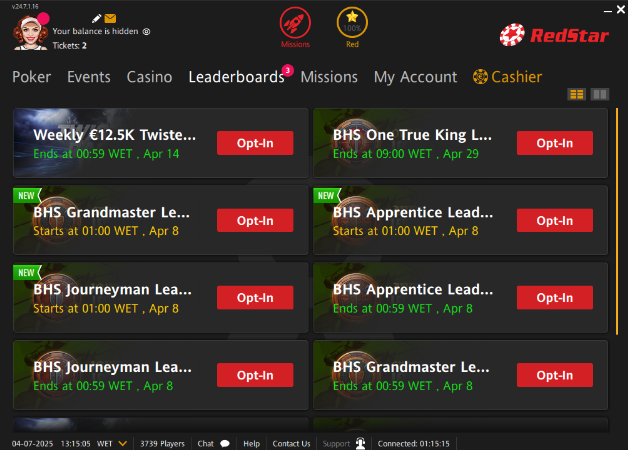 В апрельской версии BHS 2025 сеть iPoker решилась на интересный эксперимент: запустить дополнительные миссии в честь проведения серии, но не связанные с ней напрямую.
