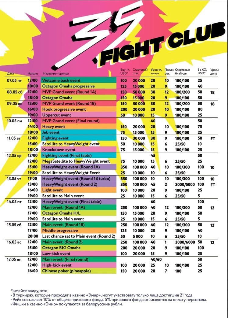 Майский BPT будет настолько особенным, что для него даже сделали особенное название BPT Fight Club. Кто смотрел «Бойцовский клуб» оценил отсылочку, ну а организаторы хотели сказать этим, что все турниры и сателлиты ближайшего этапа пройдут в формате нокаут и ре-энтри.