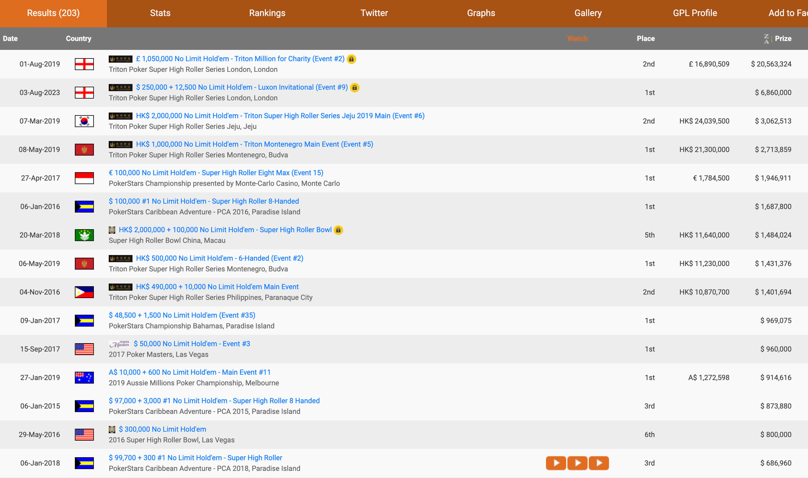 Bryn Kenney Hendonmob: лучшие результаты