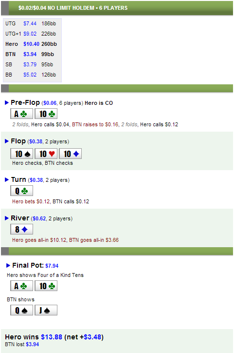 Как с таким бороться? Чек-колл, чек-колл, колл, колл, колл.. Да, я опасался сета восьмёрок.