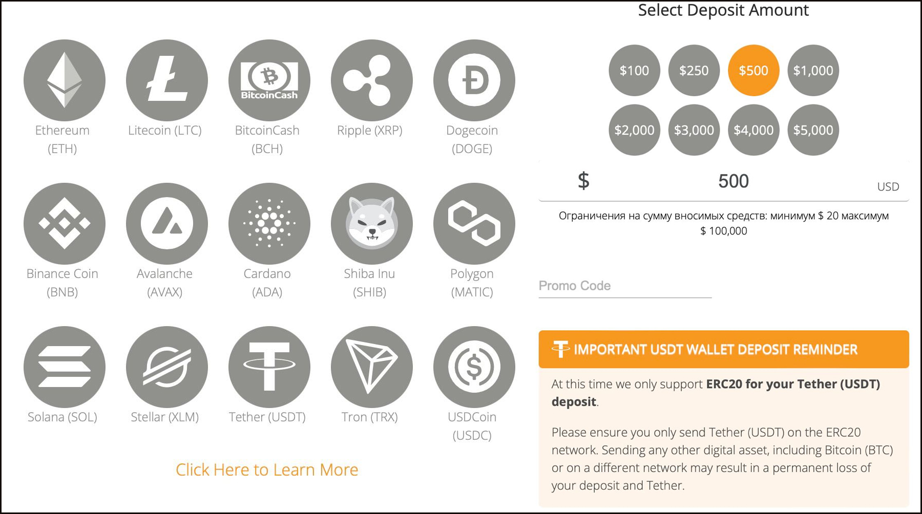 Хотя рум принимает Tron, USDT через одноимённую сеть на счёт завести нельзя — для этого можно использовать только ERC-20 (сеть Ethereum).