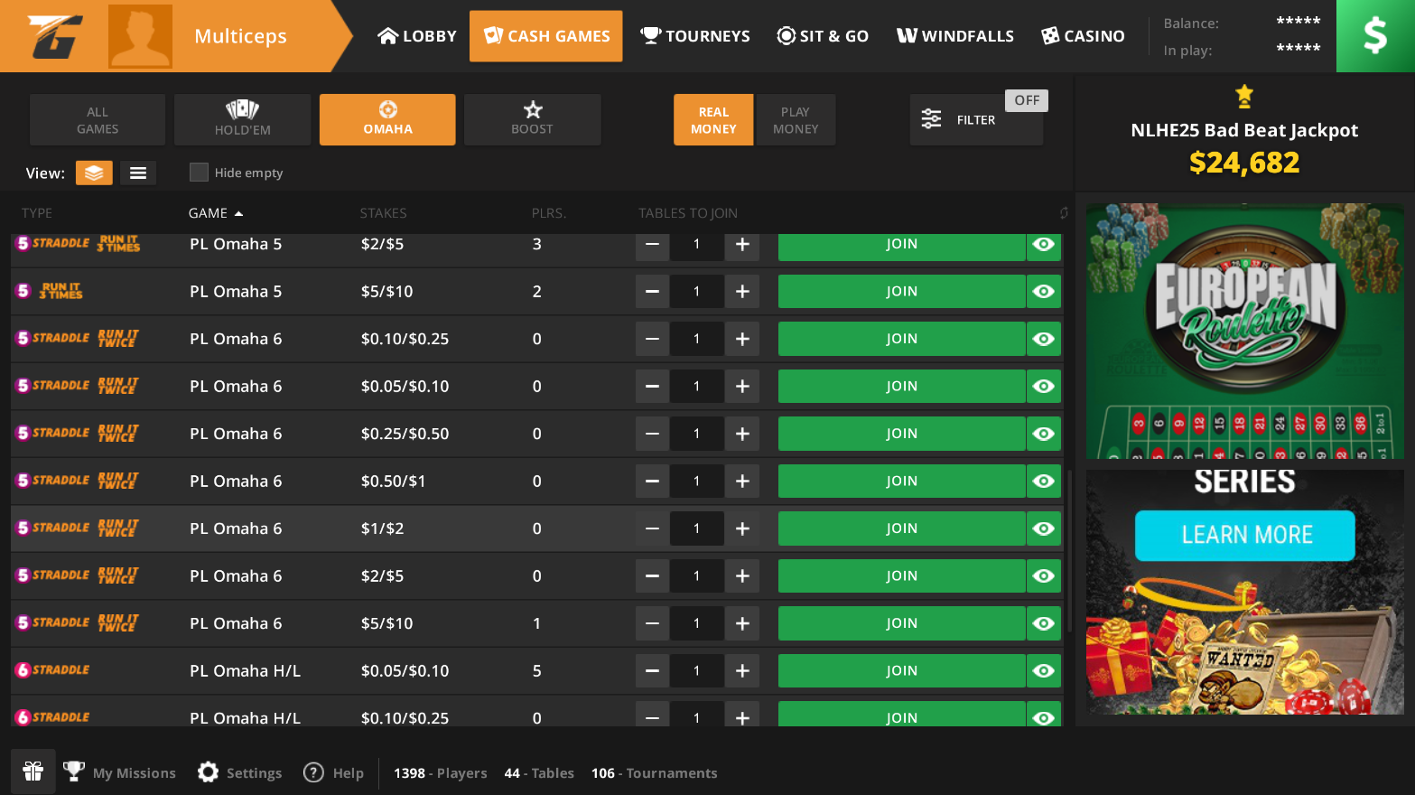 Находятся в лобби рума —> Cash games —> All Games. Отдельного фильтра для них нет, проще всего просто отсортировать стола по графе Game.