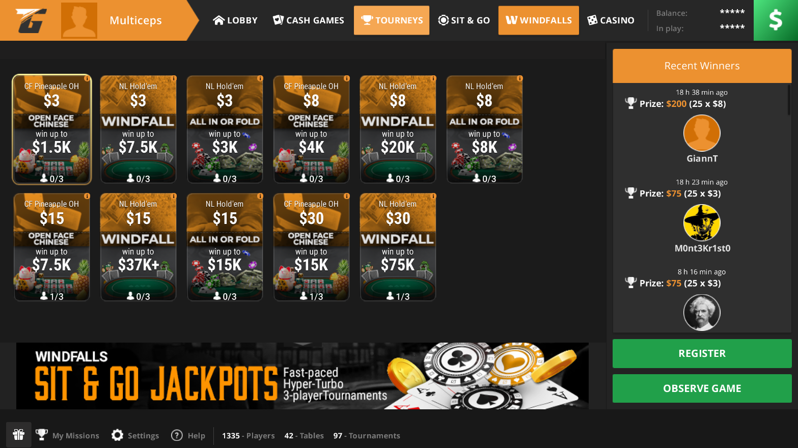 Windfalls по OFC на TigerGaming