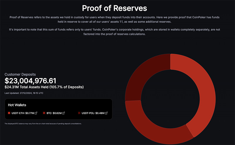 CoinPoker открыл доступ к информации о своих активах в июле. На сайте появился раздел Proof Of Reserves, в котором можно проверить