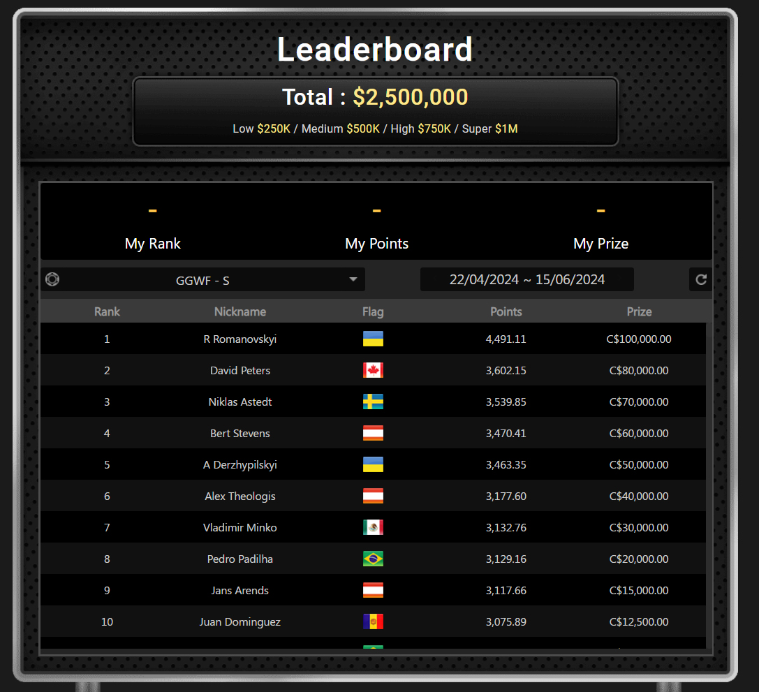 По сравнению с GGWF 2023 участники разделили в 1.5 раза больше призов — в прошлом году их было по $400K в каждом лидерборде.