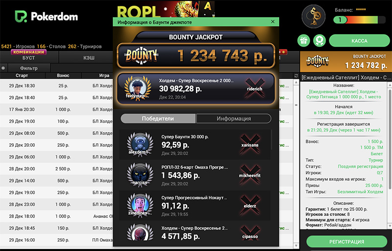 - С 30 декабря по 10 января будут проходит Фрироллы по Холдему с общим призовым фондом в ₽2,000,000; турниры стартуют каждые 3,5 часа.