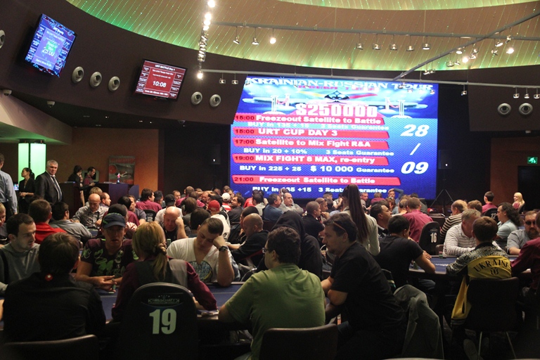 Вообще жаль, что в Одессе и Ялте последнее время все так остро с покером, говорят новый мер очень уж недолюбливает эту игру, но меня радует, что еще никто не добрался до Киева, в Крещатике игра кипит вовсю. Еще бы, ведь разыгрывается кубок чемпиона URT Battle и симпатичный чек в $32.000!