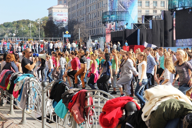 Добравшись с вокзала до Майдана (Площадь независимости), я встретил несколько сотен девчонок, которые отплясывали под Gangnam Style, выглядело это дело весьма забавно.