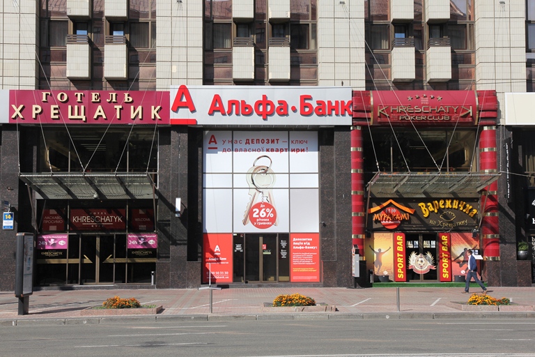Вот собственно сам Майдан, точнее та его часть, где не проходит репетиция какого-то шоу. Справа находится легендарный клуб Крещатик, куда собственно я и направлялся.
