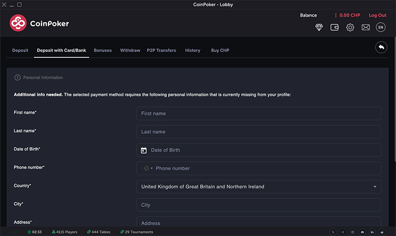 Депозит и кешаут в CoinPoker
