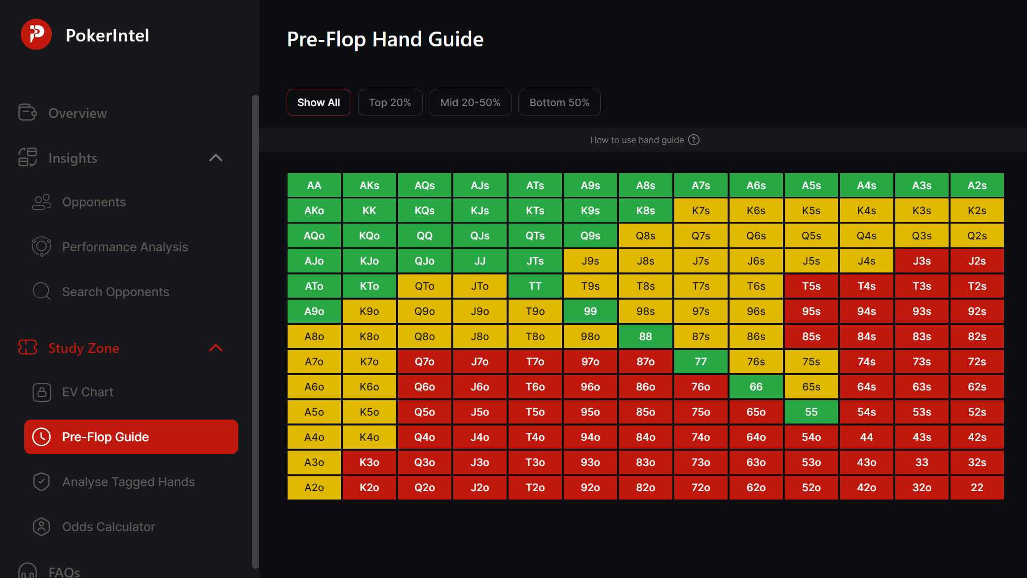 Первый — PokerIntel — представляет собой одновременно место сбора всех статистики на игрока и его оппонентов и обучающую библиотеку на основе этих данных, в том числе со встроенным префлоп-гидом.