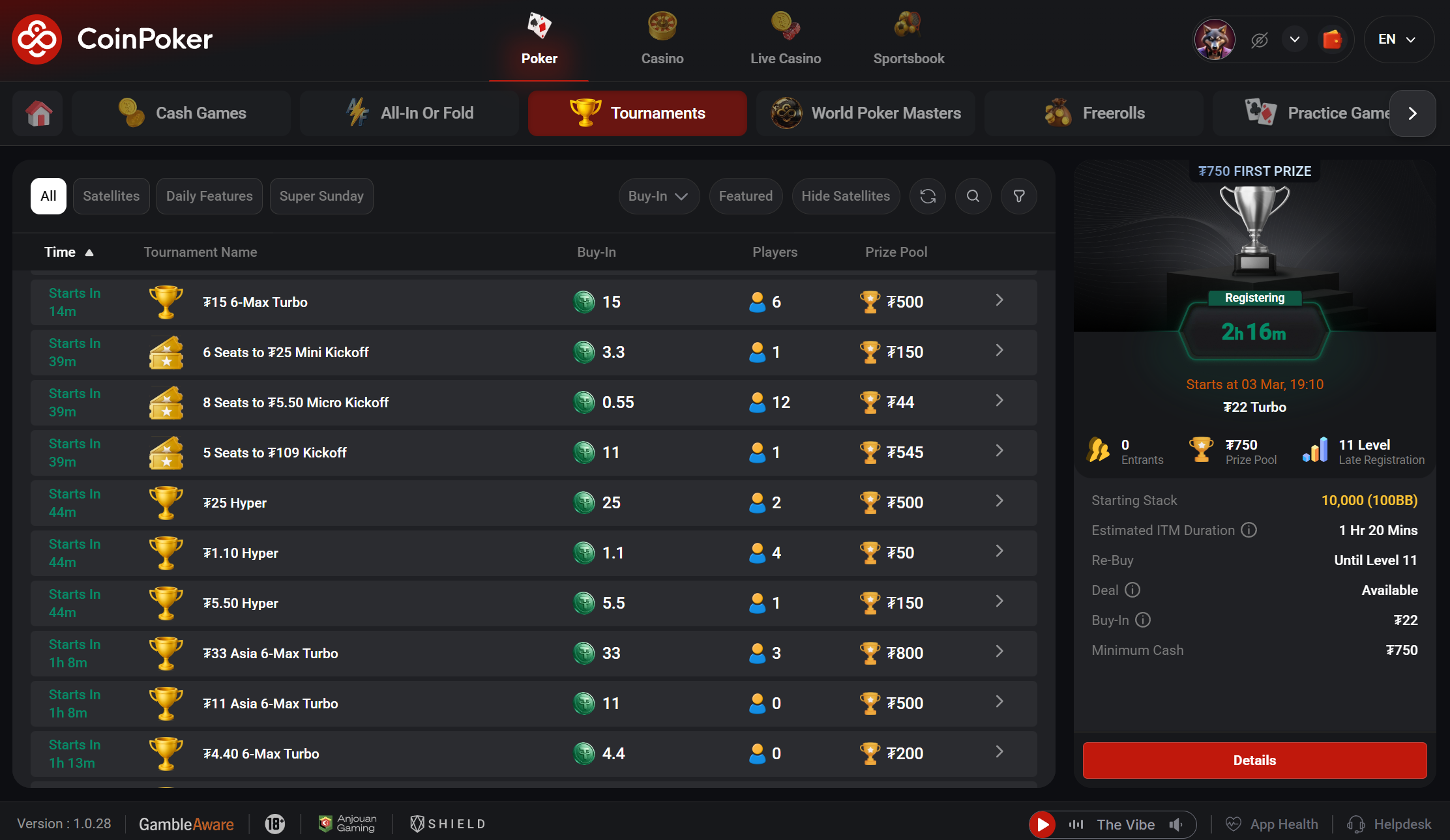- Февраль/Март 2018 — Запуск серии турниров открытия на CoinPoker