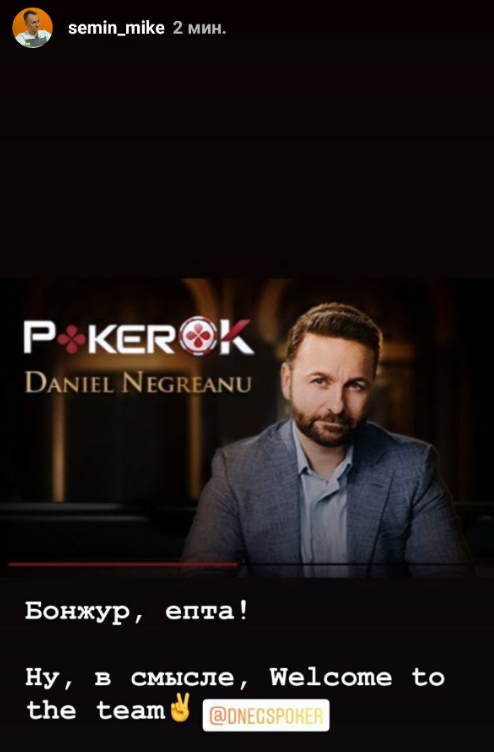 Амбассадор рума PokerOK Михаил Семин поприветствовал коллегу в instagram
