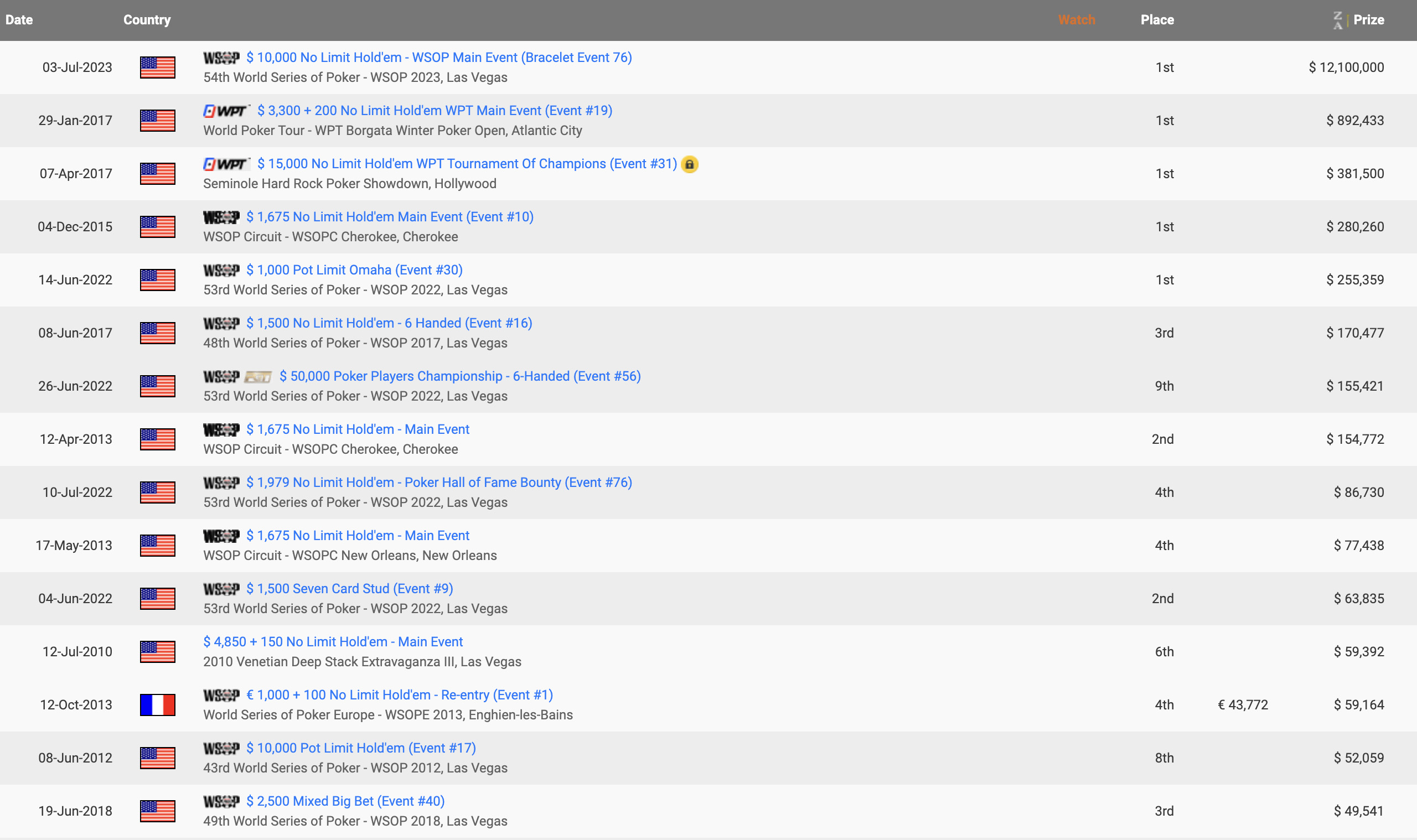 В 2022 году он выиграл свой первый браслет WSOP в $1K PLO.