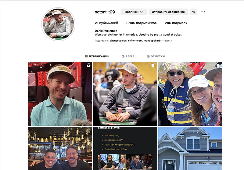 Даниэль Вайнман ведёт Instagram и Twitter. В обеих соцсетях подписан, как notontilt09. Этот ник он взял из-за того, что испытывал проблемы с тильтом в самом начале карьеры.