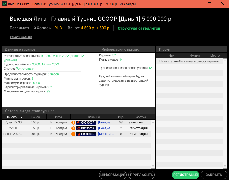 1 декабря в рамках GCOOP стартовал марафон фрироллов — 700 турниров с гарантиями ₽1,000 каждый час. Также с 1 декабря в лобби появились сателлиты на события серии.