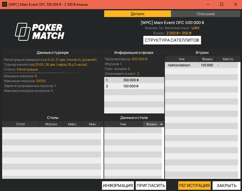 - 26 декабря, 21:00 МСК — ₴2500 WPC Main Event OFC [₴500K GTD]