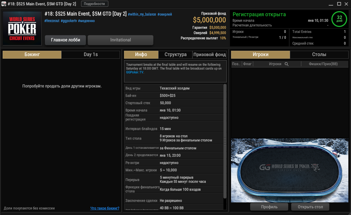 Отбор в $525 Main Event $5M Gtd начнётся 27 декабря — запланировано более 70 флайтов, они будут идти вплоть до старта Day 2 9 января. Игроки смогут участвовать в любом количестве флайтов, но в Day 2 перейдут с самым большим стеком.